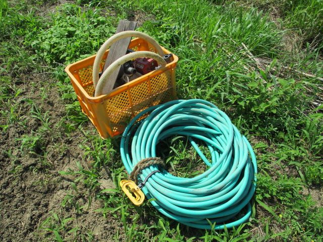 ポンプの他に、ホース、水路をせき止める板など細々と必要なんです。