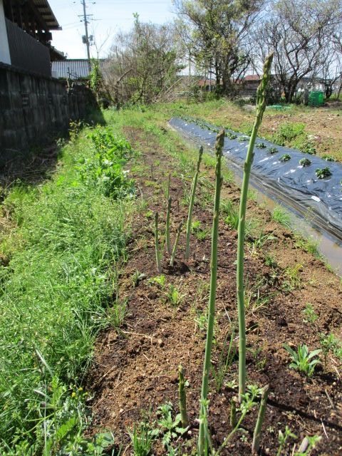 4年生のアスパラガスが伸びてきました。