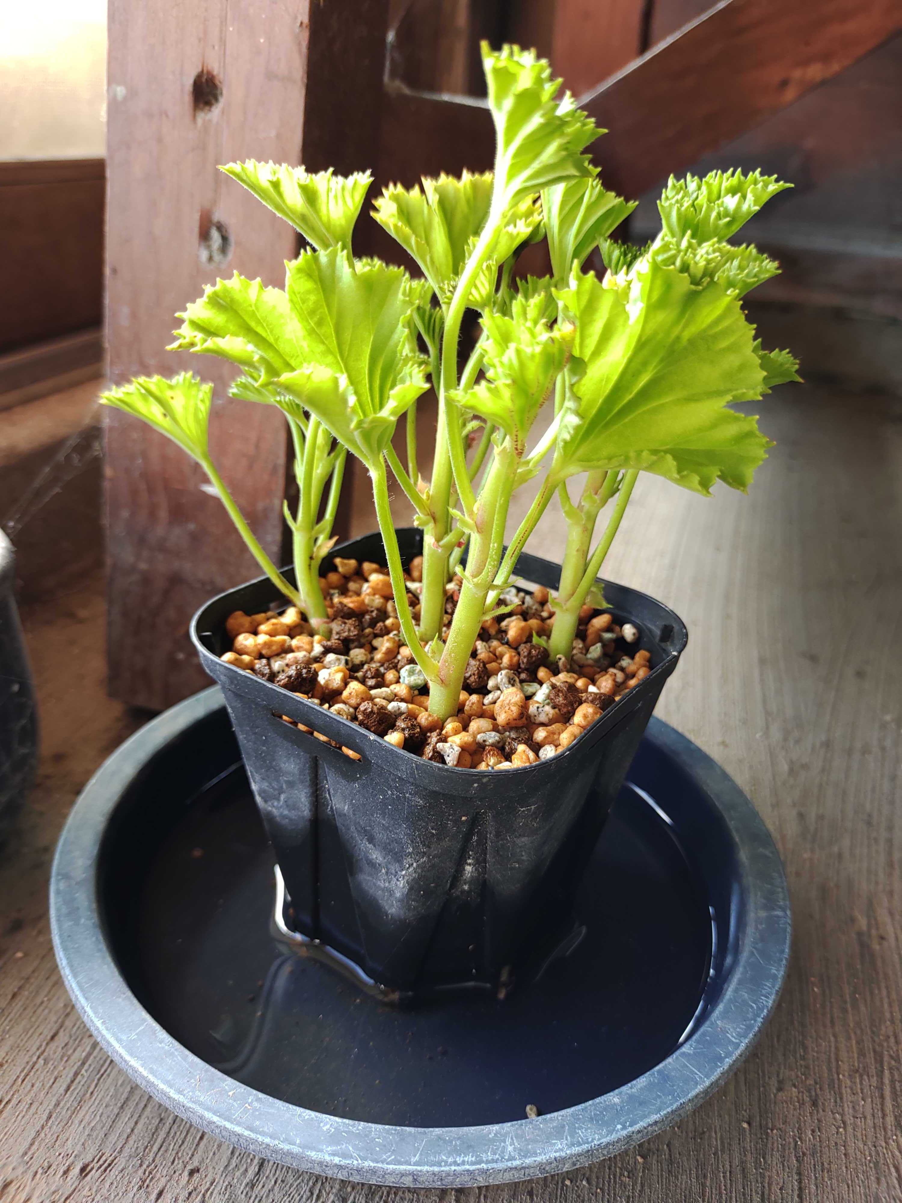 挿し芽で増やしたゼラニウムが、どうも不調です。