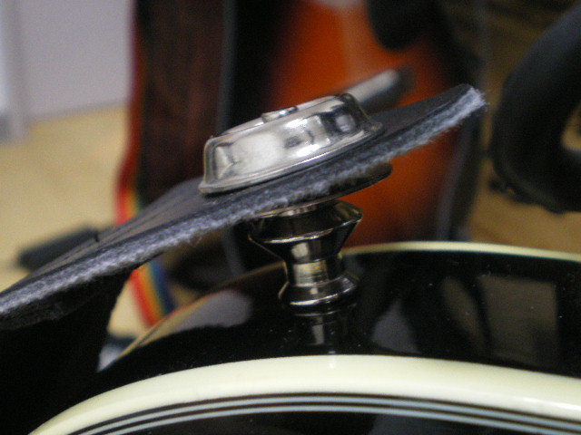 レスポールってピンがへんなほう向いてついててストラップとれやすいからロックできるタイプに交換。もうこれも戻すことはないので接着剤でとめちゃってます。