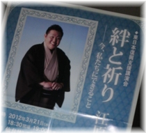 東日本大震災チャリティ講演会 「絆と祈り」―今、私たちにできることに行ってきました講演の最後には。。。震災で亡くなられた方、会場に来ている私達の天国にいる家族、ご先祖様へ...僧侶・山田義浩氏の読経が行われました。『読経』が会場内に響きわたり体に染み込むというか・・・心が洗われるような感覚自然に涙が溢れましたチケット代は驚きの1000円(復興支援金として寄付されます)供養付き講演会なんて、なかなか無いですよね