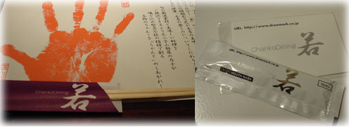 お店の名前入りのあぶらとり紙とマウスウォッシュが置いてある(↑上の写真)