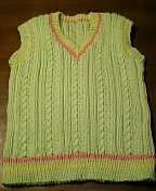 ついに完成した。ゲージをとってから、まるまる3日間。この作業以外は、必要最小限の家事しかしない生活。(当然、パソコンも我慢、ガマン)それが、これなのだ!網目模様のアップはこちら!学生時代は、同じ期間で大人用を編めたけど、今はこれが精一杯(>_