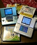 に出発してしまった。本日の物欲額、47,817円なり。ニンテンドーDSがどうしても欲しくなり、今朝からいろんなお店を放浪。広のGEO(ゲオ)→FUTABA図書→DEODEO広店→DEODEO呉店→みどり屋→ファミザウルスすべて「完売」「品切」「入荷未定」の文字が躍る。ほとんどあきらめに近い心境でゆめタウン呉店へ。ゲーム機が置いてあるはずのコーナーには、やはりDSを発見できず。何気なくレジで聞いてみる。「あの、DSの本体はありませんか?」レジのお姉さんは、後ろのダンボールを覗き込み、「あと、白と青の2本があります」と言うではないか!私が欲しかったのはシルバーだったが、この際だ。色のことは目をつぶろう。自分専用のを買いたいという娘の注文は、希望どおりの青だし。お年玉長者の子どもたち。たまには欲しいものを買わせてあげよう。(ということで、私の財布からは2万円弱の出費であった)【ソフト一覧】兄ちゃん用nintendogs 柴&フレンズ妹用nintendogs ダックス&フレンズたまごっちのプチプチおみせっち私とダンナ用東北大学未来科学技術共同研究センター川島隆太教授監修 もっと脳を鍛える大人のDSトレーニングジャンル:脳活性化ソフトという活字にかなり期待(^^)商業広告に乗せられている気もするが、脳の老化速度を少しでも鈍らせるために楽しく努力してみよう(^_-)-☆