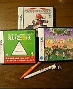 というタイトルで、都はるみさんを歌ったそこのあなた!ぶっぶー。ファイナルアンサーは「ざんね~ん」です(^^)あ、それに3日遅れじゃないじゃん(-_-;)2日遅れで本日、節分の行事を執り行う。きょうは兄ちゃんの11回目の誕生日だったので、じいちゃんばあちゃんは、孫のプレゼントを買いにやってきた。そのついでに、節分行事にも参加。何年ぶりかのーと言いながら、非常にうれしそうだった。(ま、親孝行ができたと解釈しておこう!)プレゼントは、予想通り、DSのソフト。兄ちゃんは、マリオカート。なぜか妹まで、「どうぶつの森」をゲット(^^ゞそして、前日にはダンナ用に「えいご漬け」を買った。手前にあるのは、ペンを入れるカートリッジ。これを使うと字が書きやすい。まだまだ先は長いけど、一つひとつ目の前の仕事をこなしていこう。次の週末は、楽しい行事が目白押しなのだ。今度こそ、勇気を出して、言うぞ!「すみません、ちょっと今週はお断りします」無理だな、きっと。