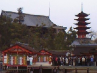 初詣でに宮島へ行ってきました。宮島へ家族で行くときの方法は、いつも我が家は決まっています。車でフジグランナタリー店まで行き駐車場に停めてから、広電に乗って宮島口まで子ども連れなので、ここのフードコートでだいたい昼食をすませます。宮島へ渡る船は、時間は関係なくどんどん到着しては出発します。どの船も満員です渡ってからも多くの人が道を歩いています。ふだんは鹿のほうが目立つのに、きょうばかりは鹿も遠慮気味?お祭りのように屋台も出て賑やかでした。参拝するのも、まるで先日のディズニーランドのように並ばなきゃなりません海はずいぶんひいていたので、子どもたちは砂地で遊びたがります。仕方なく、鹿と遊びつつ待っていると、何やら本殿に人が集まってきました。13時から奉納の舞が始まるとのこと。遠くからではありましたが、雅楽の生演奏に耳を傾け、日本の伝統芸能にしばし浸りました ↑かなり遠くから撮ったのでボケボケですみません。そろそろ帰ろうかと、桟橋に向かっている途中、「マムシ」とか「コブラ」とか書いてある箱を見つけました。何気なく足を止めると、ちょっと危なそうなおじさんがヘビを身体に巻きつけています。「ハブとマングースの戦いが見られるのか?」と、みな遠巻きにしながらも集まってきます。おじさんは、ヘビを触らせるためにぐるっと一周します。娘は平気で触りますが、息子は怖がりなので触らないまま。たぶん、それをおじさんは見ていたのでしょう。「ちょっとそこのボク」と呼ばれ、このような状況を体験させられました。 顔がこわばっていましたが、このような格好で人の円の中を一周させられました。最後は自分でこのヘビをはずし、かごの中に入れるところまでがお仕事。最後にみなから拍手をしてもらいました。新年早々、良き思い出ができてラッキーでした。イノシシである息子は、ヘビに締められてどうだったんでしょう。戻ってからフジグランでお買い物。パン屋さんでこのようなかわいいものを発見 イノシシ年にちなんだクリームパンです。中のクリームも美味しかった♪年末年始はやはり体重グラフが右肩上がりそろそろ戻さなきゃ ↑広島ブログに参加しています。↑ よろしければカチッとクリックお願いしますm(__)m