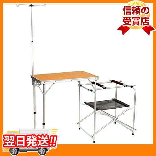 先日、キッチンテーブルの画像を公開させていただいておりましたが、本日より新商品2商品発売となりましたまずは、先日もご案内しておりましたキッチンテーブル新商品発売記念として、100台のみ5,980円(送料込)での販売です。※通常価格7,480円キッチンテーブルがあるのとないのとではバーベキューの効率が全然違います。特にツーバーナー系をお持ちの方には必須アイテム。続いてはありそうでなかった、ちょっとロングなミニテーブル一般的なミニテーブルは40×60cmタイプ。でもちょっと小さくないですか?という訳で1.5倍の90cmにしちゃいました。収納サイズはそのまま。しかも高さ2段階調整です!いや、どっちもローでしょ? と思いましたか?でも地面に座ってる時と、ローチェアに座っている時、快適なテーブルの高さ違いませんか?そんなかゆいところに手が届くミニテーブルになっています。接地面にはプロテクターも付いているので室内でも安心設計。普段部屋にテーブル置きたくない!という方のちゃぶ台替わりにも使えます。 折りたたんだらこんなサイズ。 ちなみに、現在楽天お買いものマラソン開催されております。eSPORTSのオリジナルアウトドアアイテムも特別価格になっています。23日火曜日までですので是非是非ご覧ください♪折りたたみ アルミミニテーブル バンブー柄 90×40cm ピクニックテーブル QC-3FT90 【アウトドア キャンプ 花見 三つ折りローテーブル】