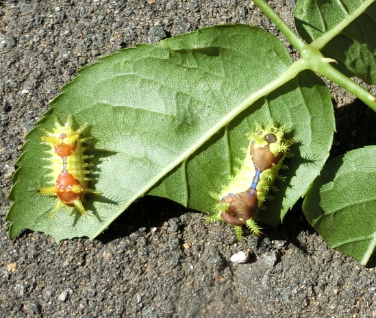 北庭の山椒の木を堀り上げました。黄アゲハの幼虫が葉を食べまくって丸坊主です。毎年食べられたら枯れるんでしょうが、不思議と1年おきに食べられるので枯れることなく、樹齢30年ですが丈が1mも無く簡単に堀上げることが出来、鉢植えにして来春地植え予定です。。数年前、山椒の木が丸坊主に食べられてしまった時、オヤジ「網を掛けて虫が近寄れない様にする」私 「枯れてもいい様に、もう2・3本植えよう」性格の違いが判ります。 あと2本予備で買ってきたのが鉢植えになってます。これも丸坊主です。でもいいじゃん! 黄アゲハの芋虫って可愛いバラに付いた変な虫。 こいつは許せねぇ~今年は毛虫、芋虫、青虫大発生。 殺生してしまいました。