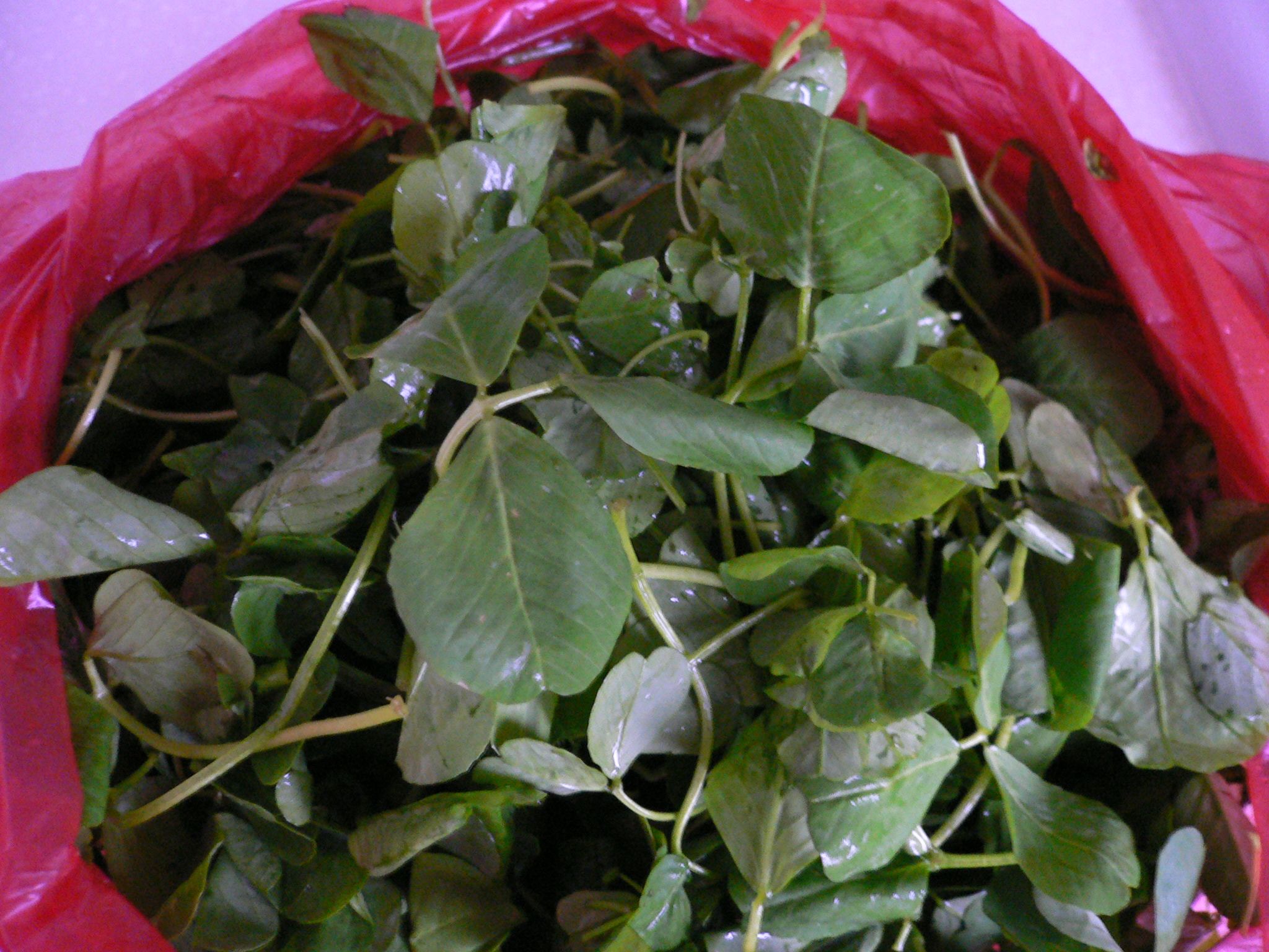市場で買った野菜?だ。おばちゃんに名前を聞いたら、「ツァオトウ」と言った。ツァオトウ・・・「草頭」。ただし、「頭」は中国語の簡体字なのでこの字とは違う。「大」の字の左上に「”」のようなものをがある文字。家にある漢日辞典には「草トウ」の二文字載っていない。クローバーに似ているのでクローバーでひいてみたら、「ツァオトウ」とは違う文字が・・・それでネットの翻訳ページで見た。「草頭」と書いて日→漢の翻訳をお願いした。そうすると「草トウ」と簡体字が出てきた。こんどは「草トウ」と書いて漢→日の翻訳をお願いした。すると ウマゴヤシ と出てきたではないか!ナヌ??!!これって草じゃぁありませんか!!!「草頭」なんだから草なのは当然といえば当然のこと。でも市場で売っていると言うことは食べられるものなんだと、買ってきた次第。さてどう調理しようか・・・中国だからきっと油で炒めえるんだろうなぁ・・・油はちょっとね・・・おひたしにしてもいいかも。湯がいてしまおう結局湯がいて卵とじにして食べたけれど・・・味はほうれん草??でもものすごく噛みごたえがあった(かたい)。