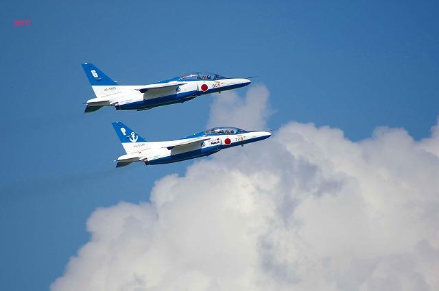ブルーインパルス(06.09.29UP)まさか、ここでスモークチェック!!スモークチェックなら、煙幕を張られた状況に成り写真など撮れるはずがありません。順位アップにご協力願います。ここを押して下さい。 さすがに、スモークチェックは行わず1機ずつ飛び立って行きました。但し、T-4ジェットエンジンの排気口から噴出された噴射ガスをまともに浴びてしまいました!!画像もご覧の通りピントを合わせるのが大変でした。順位アップにご協力願います。ここを押して下さい。←画像をクリックして下さい。<ランキングUP>