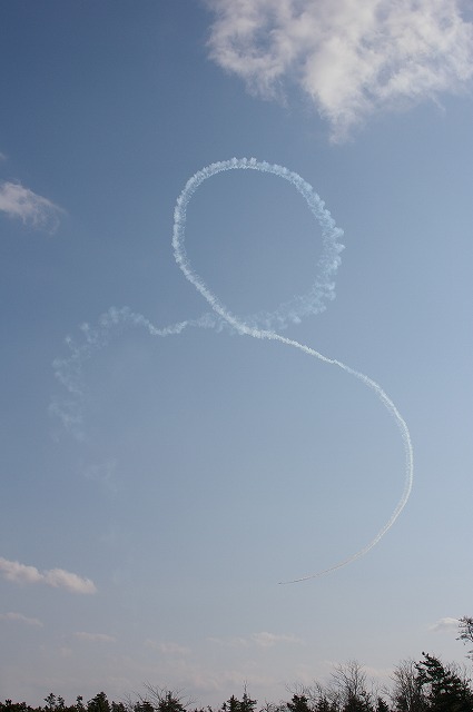 松島基地/本来は、5機で行う飛行課目「スター・クロス」です。どうですか、たまには未完成の星形もなかなかなものでしょう!順位アップにご協力願います。ここを押して下さい。 <撮07.02.07>展示飛行の時は、1.2.3.4.6番機の5機でスター・クロスの課目を行います。4機が上向き空中開花が始まりました。4機で開花しました。星形が完成です。<今朝の吾妻小富士 はれ>↑画像をクリックして下さい。<ランキングUP> ←ここも押して下さい