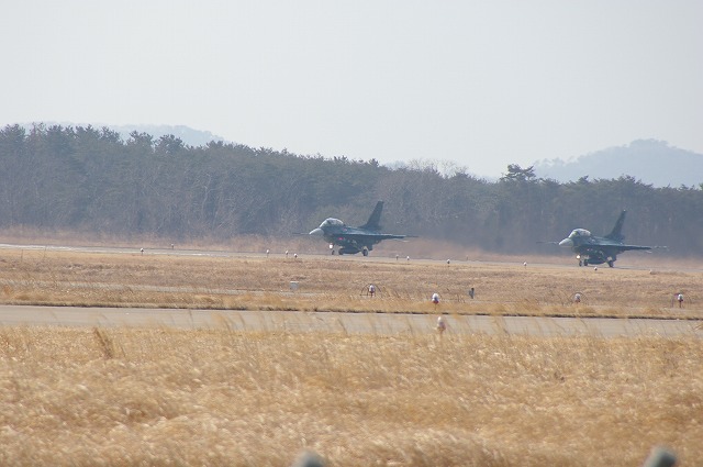 松島基地/ F-2B支援戦闘機がタクシングして来ますが。この時、困った事に大きく手を振って挨拶しているあいだ、写真を撮る事が出来ません。かと言って、カメラをかまえていては何のアクションも起きません。片手で手を振ってもう一方の手でカメラで撮る・・・ぶれて撮れません!!パイロット(教官)の方に、お願いするしかないですね。カメラをかまえるまでの5秒間位ポーズを伸ばして下さい。(我がままで、失礼致しました)(撮:07.02.28)順位アップにご協力願います。ここを押して下さい。 <模型の紹介> 戦闘機の模型に興味の有る方、是非とも