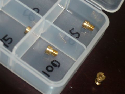 お休み。 昨日から行っている作業ですが、キャブはつきましたが、セッティングが合いません。なんでだろう、、、。予想に反してキャブが大きくのか、綺麗にエンジンが吹けません。メインジェットを何とか小さくしてみると少しずつ落ち着いて来ましたけど、買って来たメインジェットセットより小さいジェットのようでした。 やっぱキャブのセッティングが一番難しい。やはり、もう少し小さいキャブに変更した方が良いのか?