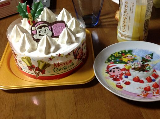 お休み 今日はウチで家族そろってクリスマス。 フジヤでケーキ買って来ました。予約してたけど結構並んでた、みんな、家でクリスマスするんだなってね見てました。 で、うちでもクリスマス。子供達にはおもちゃが届くのか?どうかなー。