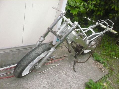 日勤でした。 ついに、、、買ってしまった。 次の課題。 本当に自分の事ながらアホ過ぎる。 フレームとタイヤとハンドルだけのドンガラ、NSR250R 88年式、(MC18型)を買ってしまった。 いやー、ついにバカもここまで来たか?また夢が始まります、伝説のバイクNSR250Rのレストアを始めたいと思います。 先日のNS50Fは4年かかったから、次も5年は完成までかかるでしょうね。まあ、楽しんでレストアしましょう。