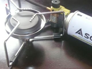 お休みでした。 シングルバーナーが届いた! スゴく小さい、それにがっちりしてる。 これならいいかも。 将来的にバイクに積んで宛も無く放浪できるかもこれですよー、キャンプの朝ご飯とかにもつかえそうだし。カセットガスがなんでも使えるから便利です。