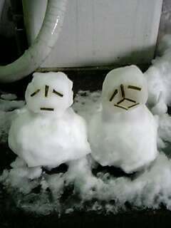 まぁ、しょうがないね。ちょっと嬉しかった事が。チュンサンとユジンの雪だるまは、店のサインポールの前に作って置いてあったんだけど。お店に入ろうとした子供が、『雪だるまだ!』って、言ってくれた。出来れば、おば様に…『チュンサンとユジンじゃない?』って、言ってもらった方がもっと嬉しかったな。