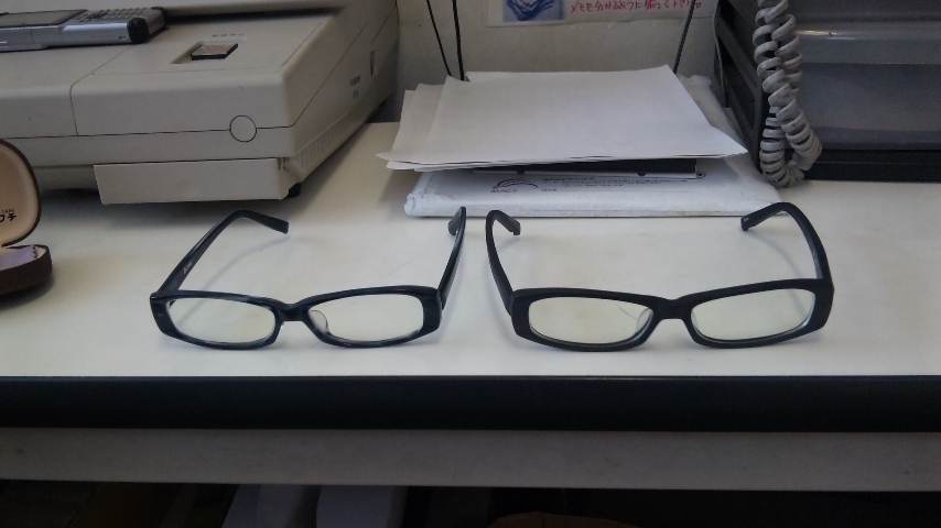 1週間前から… メガネを変えてます。 誰も気がつきません。 よーく見ないと、わからんと思います。 でも、作業中はメガネを元に戻します。 どっとが、どっちでしょう?