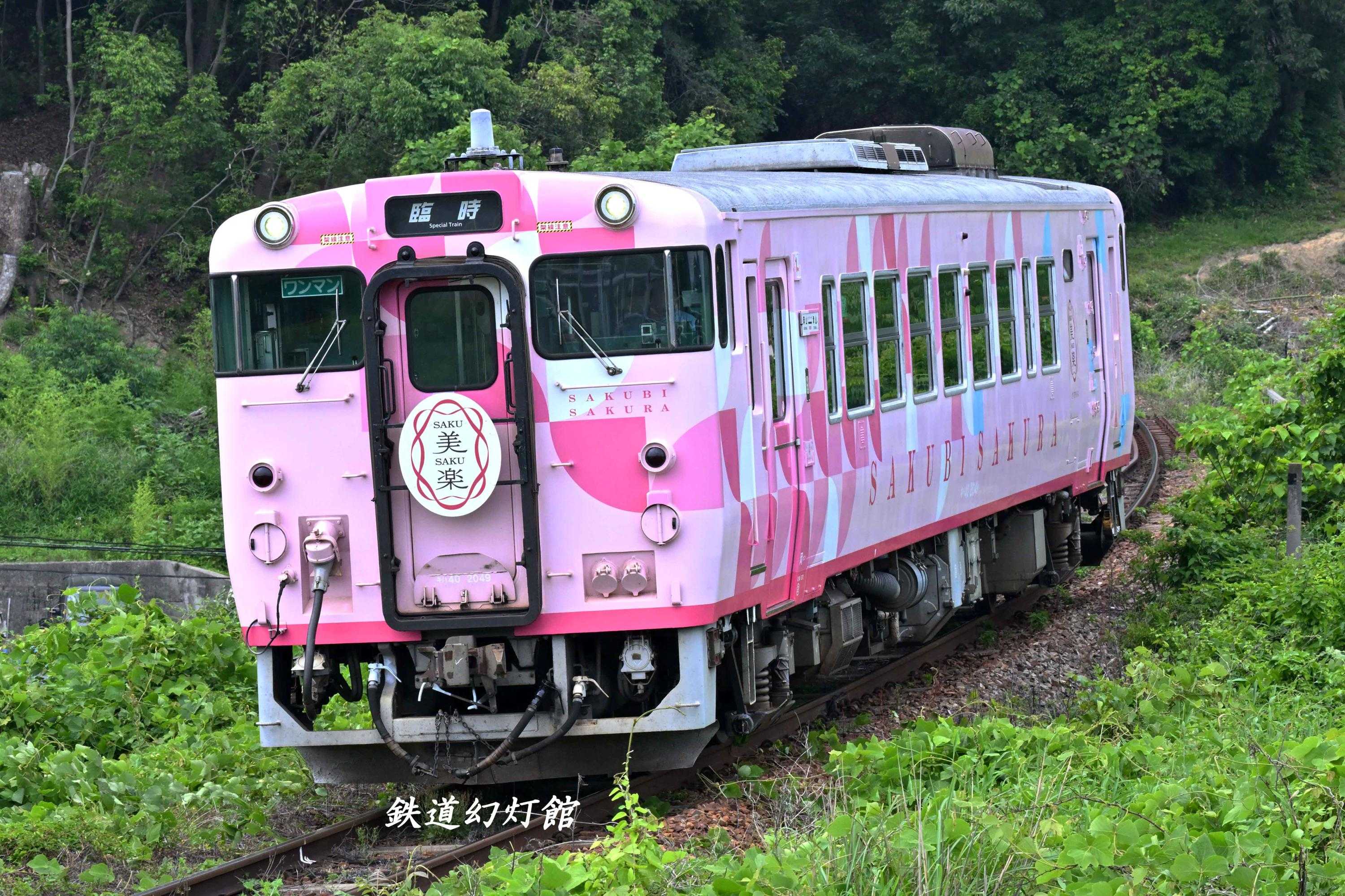 「黄色先生」通過後は津山線へ移動すると、土・日・祝であれば「 SAKU 美 SAKU 楽(さくびさくら)」の撮影に間に合う可能性が大です(撮影する場所にもよりますけどね)。この日は「 SAKU 美 SAKU 楽」がやってくる前の普通列車にも間に合いました。
