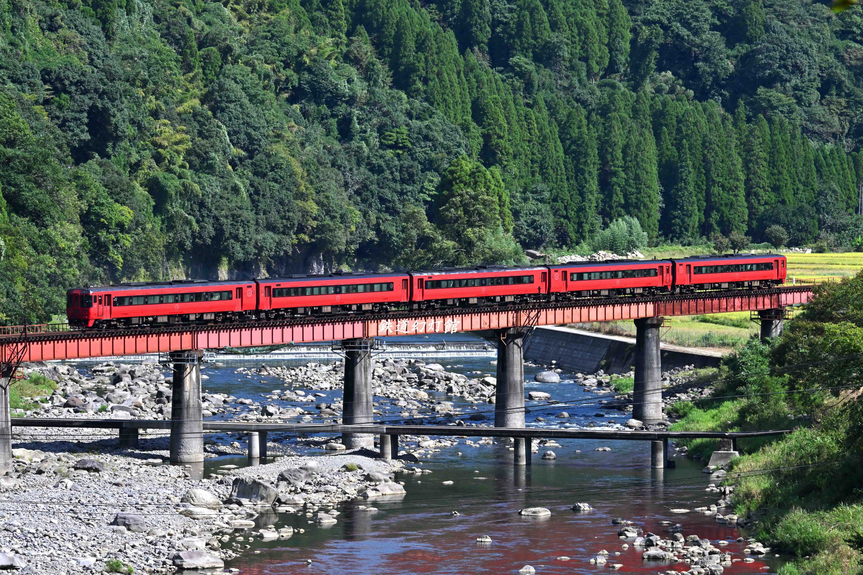 沈下橋とクロスする鉄橋は、久大本線における有名ポイントの一つです。
