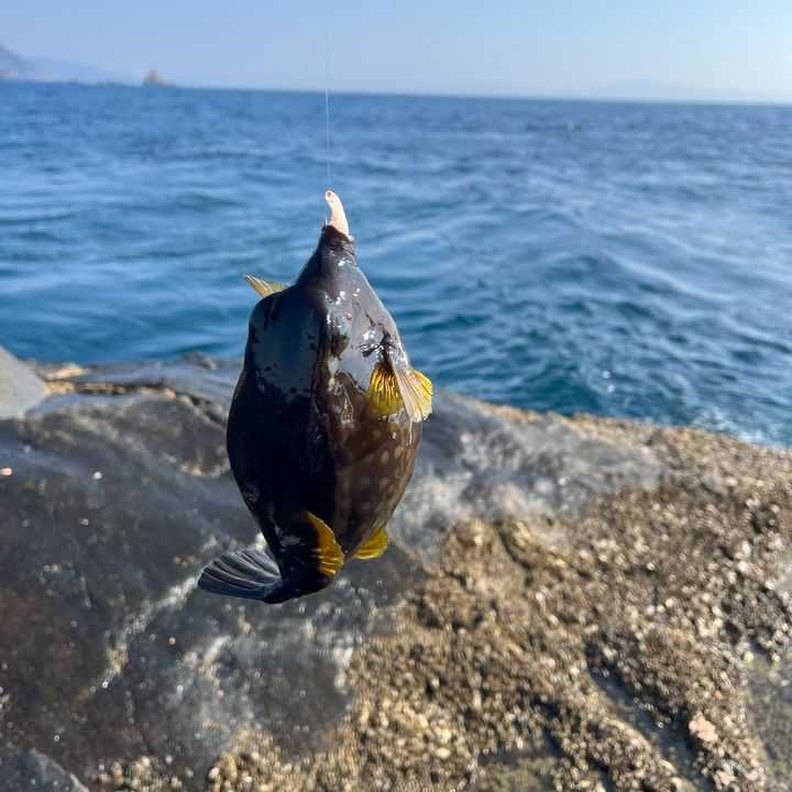 釣友は波飛沫を浴びながら、ポツポツとイサキを上げる
