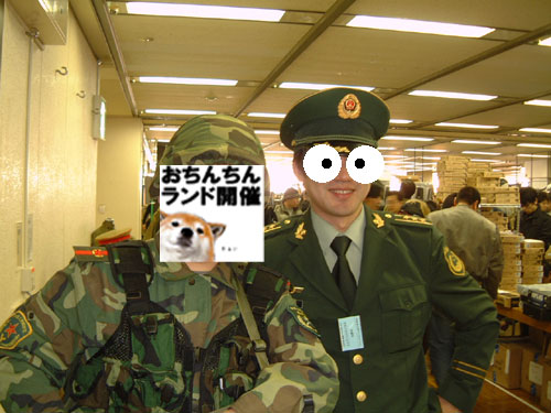 久し振りにブラックホールに行ってきました、今回は装備よりも銃とその部品にウェイトを置いて中華製電動ガン、ガスガンを扱ってるブースをウロウロウロウロ・・・・。いやぁ~、中華メーカーは恐ろしい!!ついこの間まで評判悪かった所が一つ残らず改良されてたよ!UFCのパチテックカバーも牛乳瓶の底みたいだったのがちゃんと見えるようになっていたし、STAR製G36のスコープも劇的に性能が良くなってた。STARのスコープは改良するのが遅かった気がするけど、ことUFC製品はわやくちゃだったプラスチック製品が信じられないくらいカッチリした作りに生まれ変わってたのには驚いた。せっかく中国軍フル装備でお邪魔したので、毎度お世話になってる中国装備専門の人とパチリ、レーション食おう会で更にボリュームアップされた首のお肉が凄い事になってたので久し振りの顔面フルカバー。なんと、床井雅美さん降臨!!「お、それはもしかして香港製の?、見せて見せて!」と、仰るので97式小銃を渡したら構えたりレバーをガチャガチャ弄ったり、ボタンを押してみたりと、物凄いテンションになってしまった床井さん、95/97式の問題点や両者の細かい違い、普通じゃ絶対知り得ない中国銃器の裏事情など、色々と興味深いお話を聞かせて頂きました。今回は「よ~し、パパG36K買って来ちゃうぞ~」と、意気込んで行ったのですが、G36Kは無いし、後からやって来る装備類の支払いを考えて尻込みしてしまい、結局あまり買い物はしませんでした。今回は前々から興味のあったCA製P90が13800円と言うキチガイプライスで提供されていたので買って来てしまいました、イベント特価とは言え、安いガスBLKハンドガンの定価並みですね、マルイにとって見ればたまったもんじゃないです。全体的には多少部品の仕上げの荒さはあるものの、マルイと比べてもそれほど見劣りする物でもなくメカの作動は非常にスムーズ、セレクターは固くてセミにしようとすると一気にフルに行ってしまうマルイと比べ指先一つでセミ、フルが簡単に選べる滑らかさ、この操作感の良さは特筆モノ、特にダットサイトはスチール製かと見紛う程の荒々しさ、この荒さがたまらんのです。キレイな内部です、この辺はマルイ製と比べても遜色の無い出来です、安価な中華製にありがちな金属部品の錆やプラ部品の型から抜いたままのバリ等とは無縁の世界です。(湯口の処理は中々ワイルドですけど値段を考えれば目を瞑れます)前から気になっていたこ青いのバレルですが、インナーバレルがアルミ製なので磨耗から保護するためのコーティングのようです、何故青いのかは分かりませんが、アルミや真鍮の地金と比べて正面から見た時にインナーバレルが目立ちません。中華製にしては珍しくHOPダイヤルにマルイと同様の表示が!中華製のドラム式ダイヤルはよくどっちに回したらHOPが掛るのか分からなくなる物が多いので、この表示は他のメーカーでも導入してもらいたいです。ちなみにこの銃、バネが強力過ぎて発射時に「ビヨヨヨーン」と言う間抜けな音が聞こえるのと、フルオートからセミオートに切り替えた際にセミが撃てない現象が度々起こりました、これはデチューン(マルイ純正に変更)したら直ったので、強力なバネがカットオフのタイミングを狂わせていたのかも知れません、同じ様な事が起きた人はまずバネの交換をお勧めします。マルイ純正では物足らない人はシステマのM85が良いかも知れません。ああ、あとこの銃はダットサイトが明る過ぎます、1段階でも夜使うと煌びやか過ぎて狙えず、2段階では視界が真っ赤になって何も見えません(笑)昼間覗いた感じではレンズの歪みは無くきれいな形のダットだったので、もう少し明るさを抑えてもらえると嬉しいですね。とりあえず今CA90とCA90TRで迷ってる人は迷わずTRの購入をお勧めします。