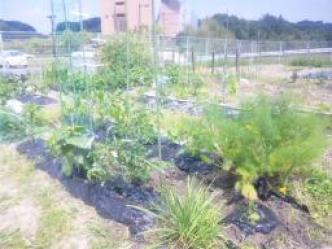 ミニトマトとパブリカも実がつきはじめ、キュウリは花が咲いてます。