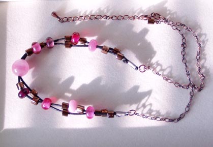 コレはピンクと相性のいいアンティークゴールドのスクエアビーズを