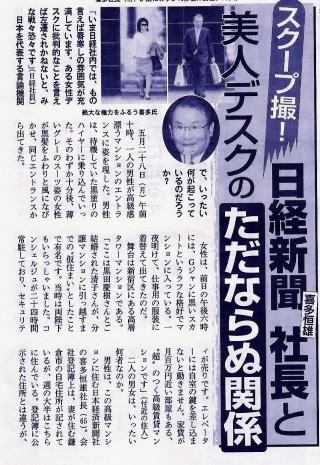 日本のクオリティーペーパーを自称する日経新聞が、社長とはいえ、いわば一個人のプライベートでの不徳を暴露されて、てんやわんやの大騒ぎ、挙句の果てには