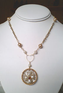 リングの中に、ハートのパールをUV樹脂で閉じ込めました。