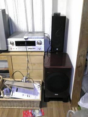 先週の日曜日に買ったホームシアターセット興奮しながら組んでいく・・・・・・?配線が、足りねぇ・・・ってか配線の事なんか、すっかり忘れてた。 あと1本テレビとアンプに繋げれば音がなるのに歯痒い明日買いに行くか。