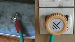 『覿面(てきめん)』ってこんな字をだったんですね。知りませんでした。それはさておき、今日は昨日予告したとおり冷蔵庫のアース処理を行いました。写真左側は冷蔵庫裏(汚くてすいません)、右側はコンセントのアース端子です。 Y端子とアース線はエルマクリーンでアース処理をした時に買っておいたものです。これで冷蔵庫のフレームとコンセントのアース端子とつなげたところ、見事なまでに検知機の反応がなくなりました。電磁波除去装置エルマクリーン検知器つき、消費税弊社負担使った検知機はもちろんエルマクリーンに付属していたものです。これは一定以上の『電場』を検知するとブザーで知らせてくれる物で、つまり、この検知機では検知しないレベルまで電場が弱まったということですね。どうしてそうなるかと言うと、アースをしていない場合はAC100Vの電圧によって発生した電場は行き場がないのでそこら辺でたむろしているんですが、アースをとることで通り道ができるためとっとと退散してくれるというわけです。 磁場に対してはどのような対策をとればいいのか分かりませんが、少なくとも電場に関してはこんな簡単なことで対策がとれるんですから、面倒がらずにきちんとアースをとりましょう。コンセントにアース端子があればそこにつなぎ、なければエルマクリーンを使いましょう。さて、このように電気機器はアースをすることで簡単に電場を地面に逃がすことができるわけですが、では、いろいろ溜め込んでいる人間に効果的な方法はないのでしょうか?それがあるんですよ。スピリチュアルなお話になるので興味のない方はするっとスルーして、興味のある方は「グラウンディング」で検索してみてください。 ←面白いと思った方はクリックしてくださ~い