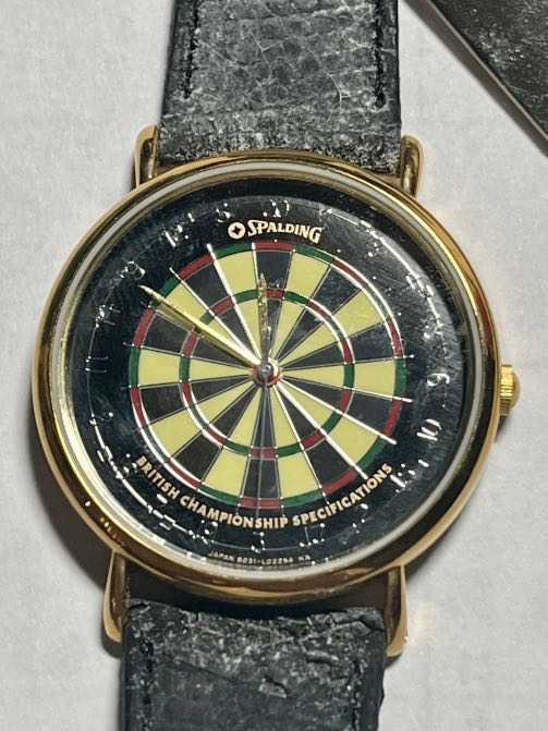 その昔、ダーツ用品の輸入代理店と卸をしていたのだけれど、その頃の商品にダーツ腕時計があった。すごくリアルにダーツボードを表現していたのだけれど、あまりにダーツボードなので、よく時間が分からない。見にくいし、時計の数字がないし・・・・・。(画像参照)で、これも売っていたのだけれど、当時は18,000円もしたんだね。あまり売れた記憶もないけれど。一つ下ろして使ってみて、あまりにも時間が見にくいので、売る気もなかったなあと。そんな時計が、整理と掃除の合間に見つかった。ベルトがもう黴ていてボロボロ。新品だけど、捨てちゃおうかと思ってる。製造元は、昔日本ダーツ協会のスポンサーだったシチズン(数年間だけどね)ふぉーっふぉっふぉっふぉっふぉ(^o^);バナー二箇所クリックよろしく!m(__)m↓にほんブログ村人気ブログランキング