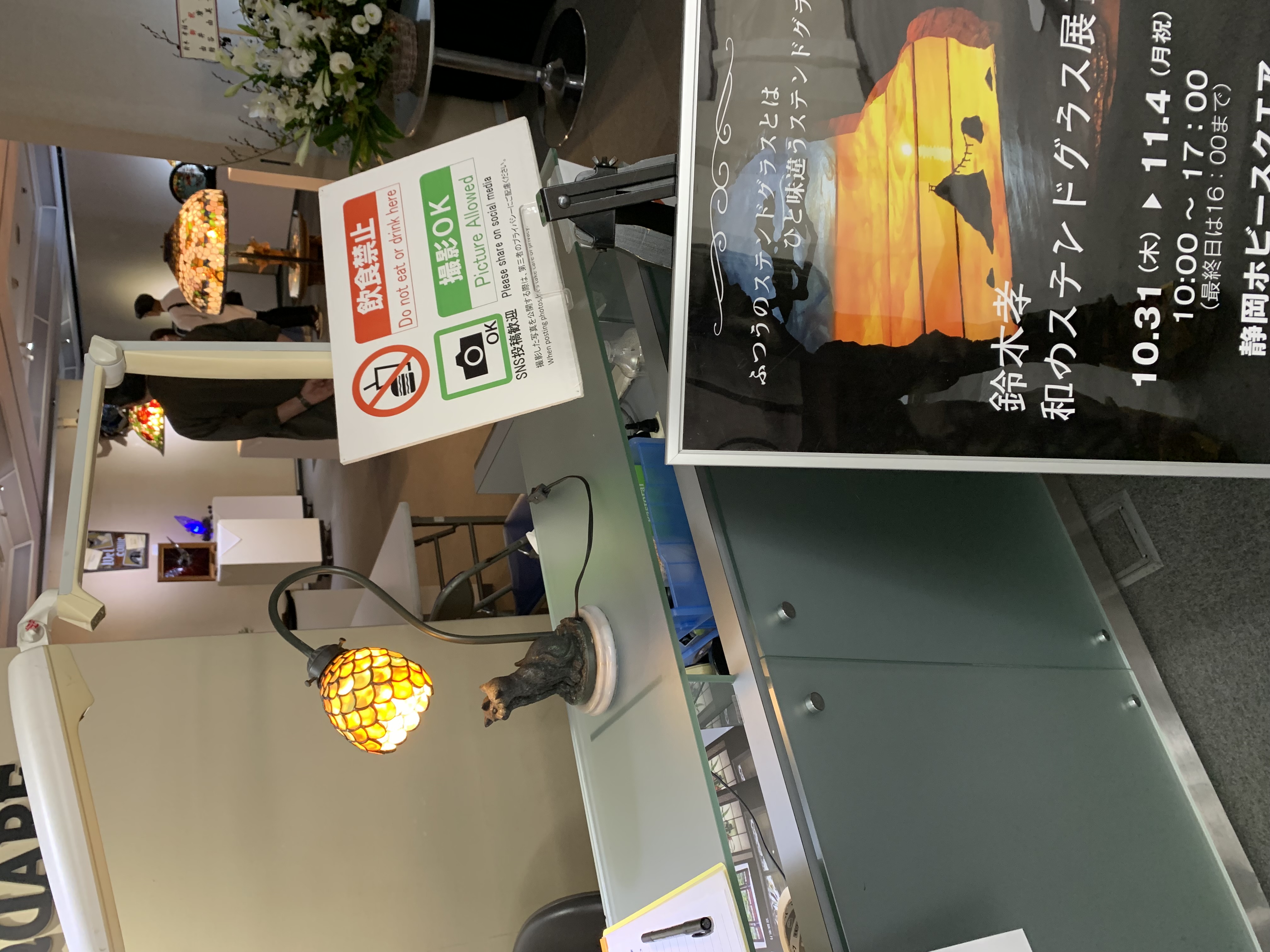10/31(木)〜11/4(月祝)まで、静岡ホビースクエア(かわもと工房作品展と同じ場所)で『かわもと工房』の鈴木孝先生が個展“和のステンドグラス展”を開きました。