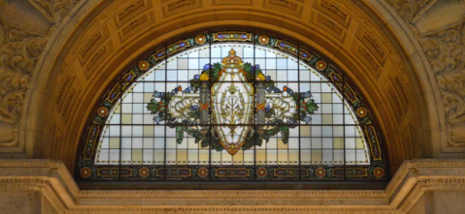 こんにちは、海野です。今回は神奈川県横浜市中区にある『横浜開港記念館』のステンドグラスを紹介します。横浜開港記念館は1917(大正6)年に横浜港の開港50周年を記念して建てられました。しかし1923(大正12)年の“関東大震災“でそのほとんどを焼失してしまったそうです。1927(昭和2)年に再建されたものの、今度は戦争が始まってしまいました。幸い空襲の被害からは逃れたものの、終戦後の1945(昭和20)年〜1958(昭和33)年まで米軍に接収されてしまいました。接収時はアメリカ人の社交場として使用されていたそうですが、ステンドグラスに“米国旗“が入っていた事(船尾の旗)から丁寧に扱って貰えたそうです。今回訪れた目的は2つありました。ひとつは、『かわもと工房』の大先生がこのステンドグラスを観て、ステンドグラスの道に進んだという話を以前から聞いていた事。どんな作品なんだろう🤔実際に観てみると作品の大きさ、キレイなガラスに圧倒されました。想像ですが、大先生は船が自分で、これから未知の世界に出航する様子を思いながら、この作品を観ていたのかも知れません。もうひとつは2009(平成21)年に横浜港開港150周年を記念して、もう1箇所のステンドグラスを修復した事。建物の保存、改修工事が昨年(2024年)に終了し、また見学ができるようになったからです。もう1箇所のステンドグラスはこちら、訪れた日は天気も良く、光がふんだんに入りとてもキレイに観る事ができました。ボランティアガイドの生田さんに“ステンドグラスを勉強している“事を話すとステンドグラスを観る時間を十分に割いて頂き、大感激😊建物の説明はもちろん、ステンドグラスについても説明して頂きました。ステンドグラスには市章(中央にある◯のデザイン、カタカナで“ハマ)が入っているだとか、籠に乗っているのは外国人で、訪問した際に籠で案内したという記述からデザインされたなどいろいろと説明して頂きました。『横浜開港記念館の外観は何処から撮るとキレイですか?』と尋ねると『県庁の屋上から撮ると良い写真が撮れる』と教えて頂きました(平日のみ屋上が開放されるそうです)ありがとうございました🙇♂️また、平成の改修工事に携わった横浜のステンドグラスマイスター・平山先生による講演会が2025年3月30日(日)に横浜開港記念館で行われるそうです。お時間があれば、是非ステンドグラス修復のお話を聴いてみてください。ステンドグラス工房かわもとのホームページはこちらステンドグラス工房かわもとのネットショップはこちら