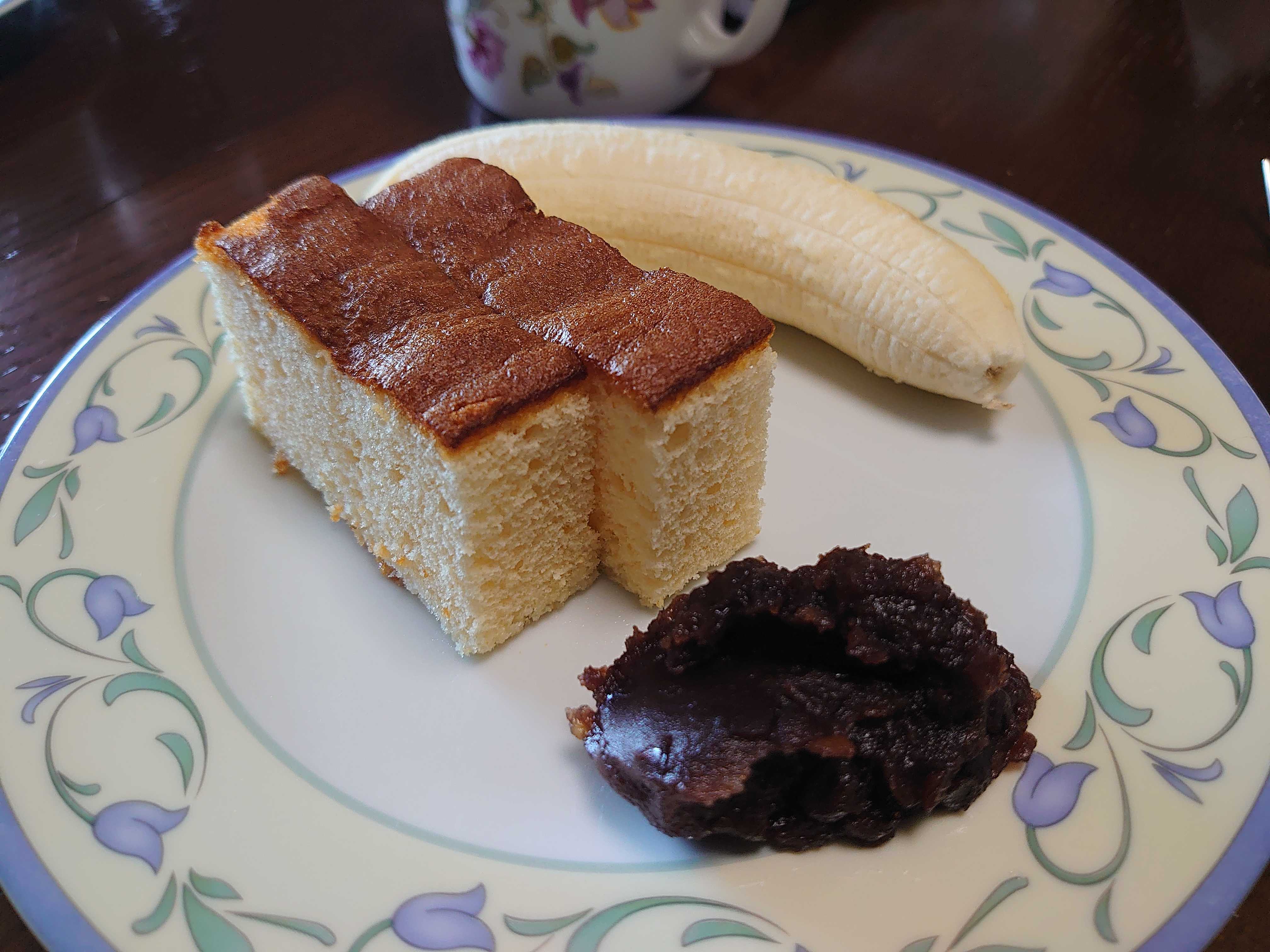 切りだしカステラを、バナナと小豆あんでいただきました。
