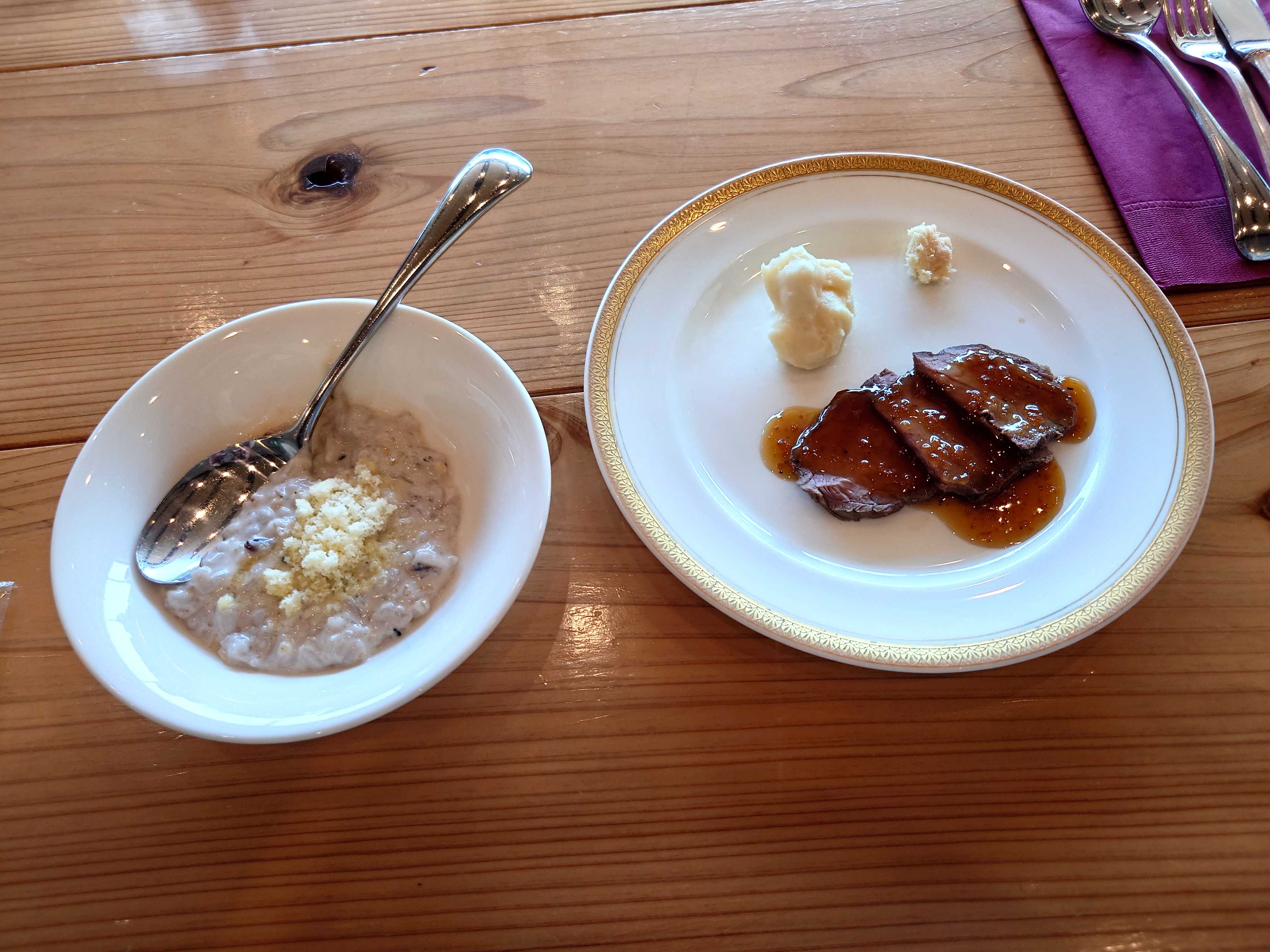 3回目。左が、チーズリゾット、右が、2回目のローストビーフ。