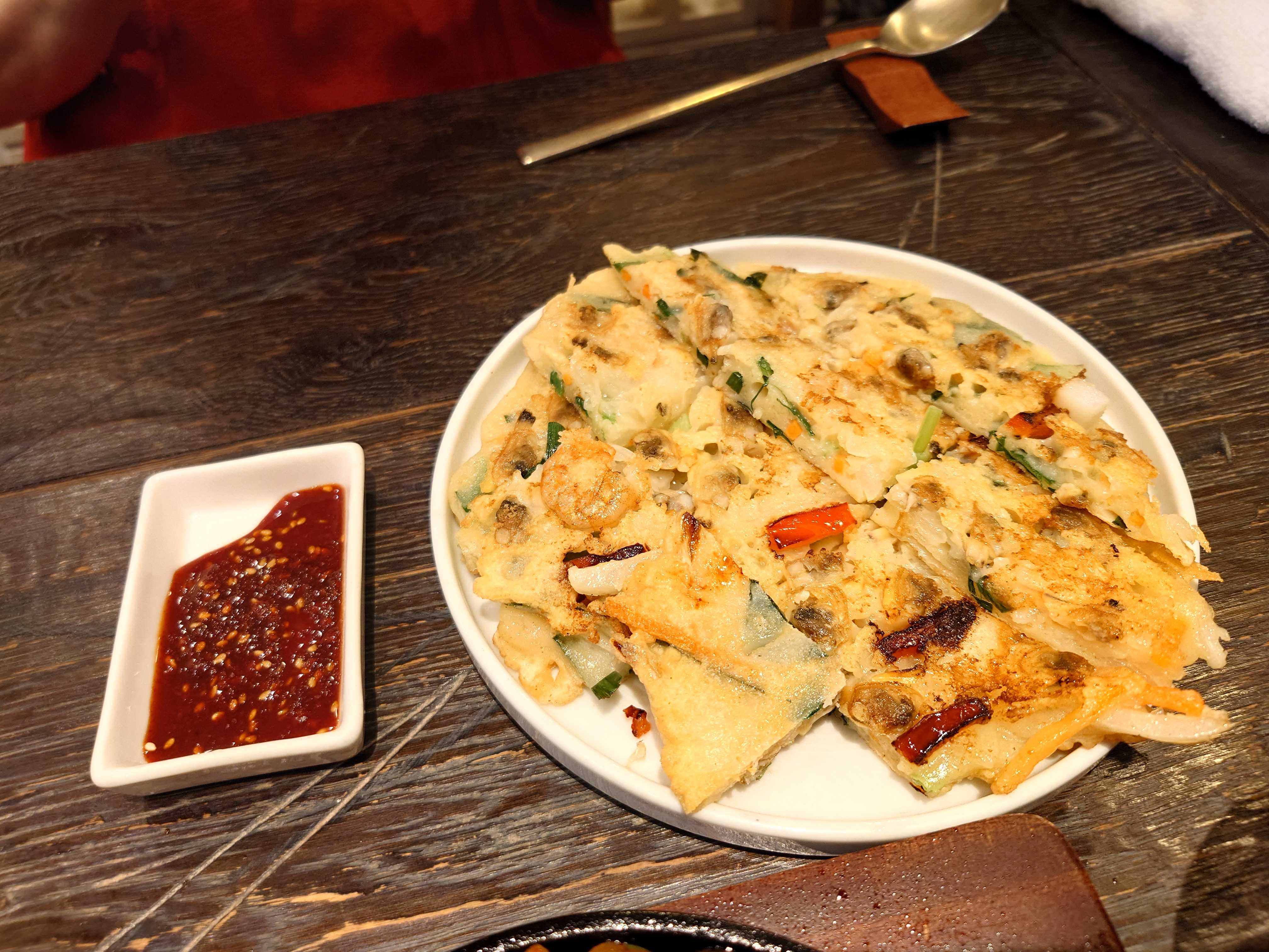 ランチセットについてくる「季節のチヂミ」と惣菜。