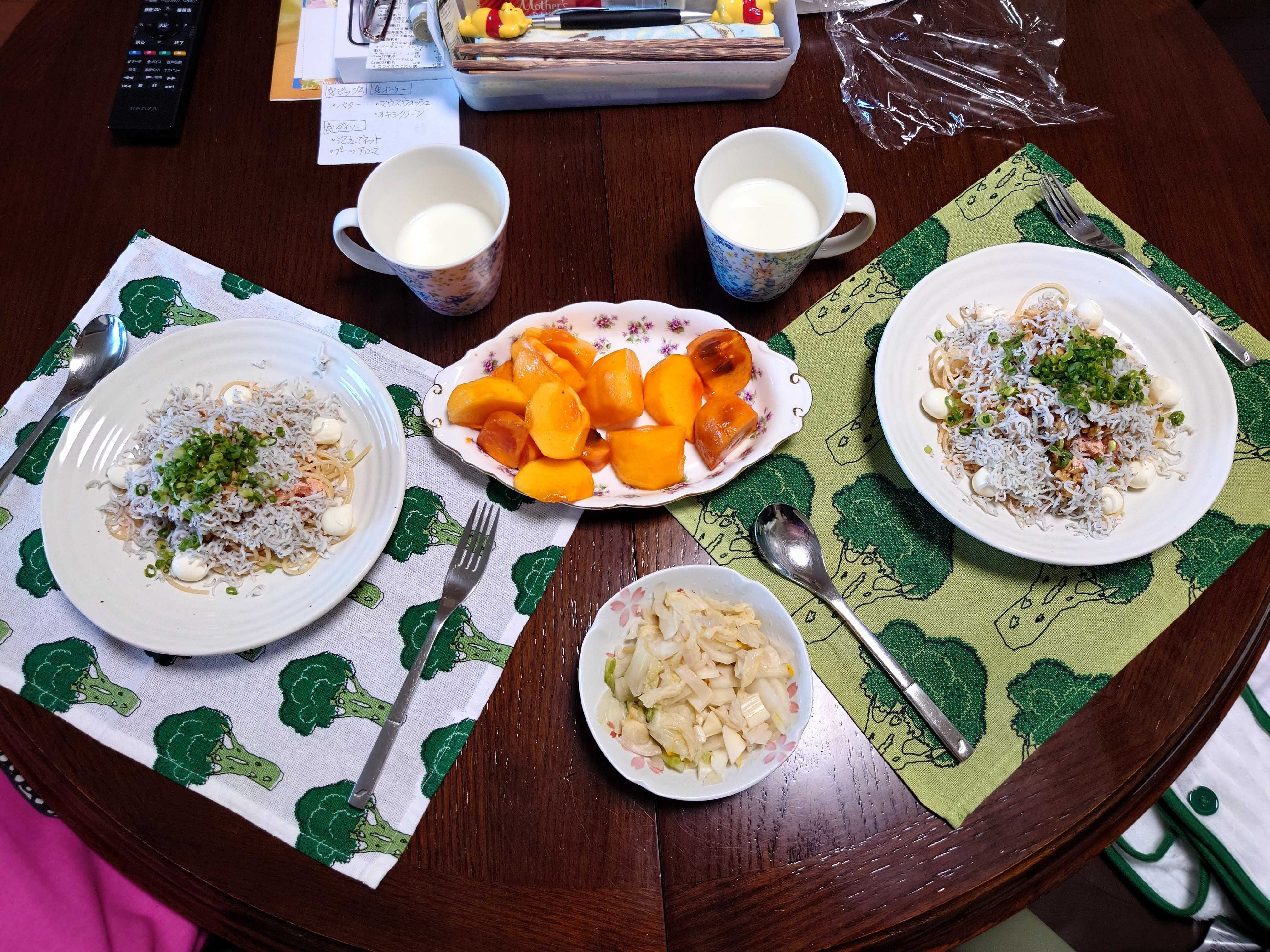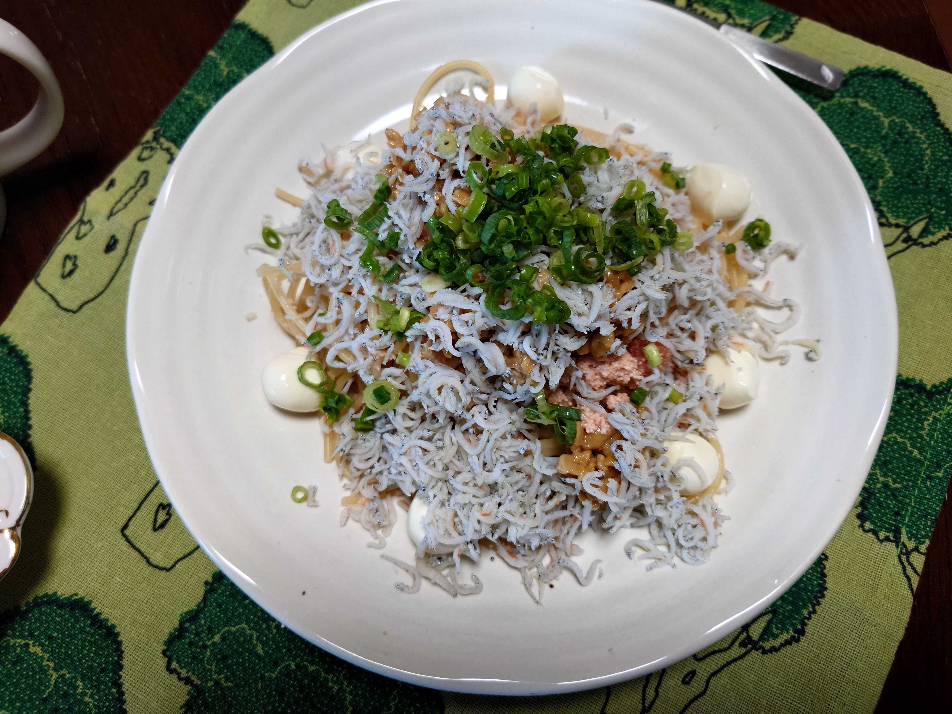 しらすたらこ納豆パスタ。