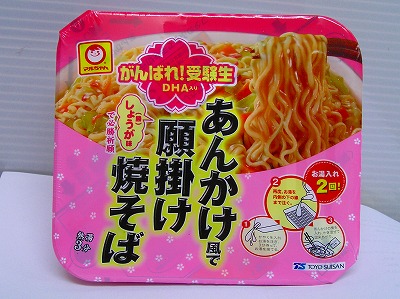 あんかけ風で“願掛け”焼そば。 しかもしょう(勝)が味で必勝祈願となっている。 ほとんどダジャレの世界なわけだが、 味の方はどうなのだろう。 こちらは、麺づくりで点づくり ゴマを“点”に例えて、100点を作ろうという乗りらしい。 ちょっと苦しいだろ。 合格祈願の一員として、教室に置いておくね。