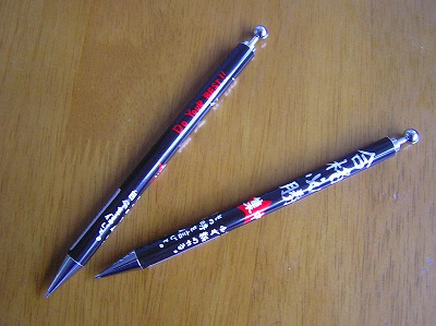 新しい合格グッズである。 ちょっと青色がかっているが、実際は黒色だ。 年末から景品の一部として添えている。 『集中』 の文字の下に、 『君ががんばってきたことが必ず報われる。その時を信じて。自分を信じて。』 と書いてある。 なかなか、いい。 絵手紙風の白い文字が、黒の背景によく映えている。 こちらは別の型。 赤い 『絶対勝つ!!』 の側面の言葉は、 『あきらめたらそこで終わりだよ。』 だ。 まさにその通りだね。 いずれも受験生にとって励みになる、 素敵な言葉である。 ペンを握る手に、思わず力が入るのではないか。 まだ在庫があるので、 受験生に対し、先着8名に限りプレゼントしようと思う。 中3生・中2生(ともに塾生限定)で欲しい仲間は、 今日11日から受け付けるので、 塾長の携帯メール、またはこのブログのメールに、 「欲しい!」と送信しよう。 ただし、本人が打ち込んだメールに限定する。 (親御さんの携帯からでも構いませんが、 本人が打ち込んだものであることが条件です) このブログをよく見てくれる、 また、 メール登録をしてくれている君への特典だ。 中3生は入試直前の追い込みに、 中2生はこれから1年間の受験勉強の励みとして、 使って欲しい。 早い者勝ちだよ。