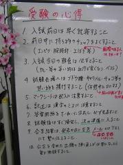 先ほどボードに「受験の心得」を書いた。 今日明日の注意点、連絡系統など、重要なことが書いてあるので、 今日来る(来た)者はよく見ておこう。 携帯で写しておいてもいい。 本日休みで気になる受験生は、見に来てもいいぞ。 書類に印を押す手続きが終わっていない者もいるのでは? 身の周りのあらゆることに、感謝を忘れずにね。 では明日、明後日が試験の生徒は、 いってらっしゃい。
