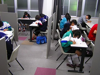 試験前の部活休止期間に入った。 初日の今日、さっそく自習に来たメンバーがいた。 中2のAさん、Mさん、Iさん、そして中3のHさん、Oさん。 みな提出物の作成や、自分の課題と向き合っているようだった。 家だと集中できない。 そう言ってここを訪れる生徒は多い。 それぞれ自分の仕上げ方があり、工夫を凝らしている。 そのためにここの自習室が必要なら、何時間でも使いなさい。 先輩たちもみなここに城を築きに来た。 何時間も、何日も、自分と闘いに来た。 そして一つ一つ本物の学びを知っていった。 質問があれば席を立ち、聞きに来なさい。 可能性は教室にというか、 君が席を埋めに来ることで用意されている。 温度差のある熱い可能性だ。 家でテレビやゲームを楽しみ、理由をつけてダラダラと寝ている。 そんな仲間が周りにいるならば、 君はここに来ることで一歩も二歩も前進できるだろう。 いやそれは階段20段に当たるかも知れない。 席に座り、ペンを持つことが、可能性なのだ。 掴めることなのだ。 何を学んだ、何を得た以前に、まず捕まえに行くということ。 掴む態勢を定めるということなのである。 定期テスト自習デビュー。 明日は何人来るか。 得点を重ねたいのなら、ここに牙城を築きに来なさい。 家にはない発見が必ずある。 先輩たちの執念が染み込んだ机と椅子は、 君が使うのを待っている。 温度差を感じるときは、今だ。