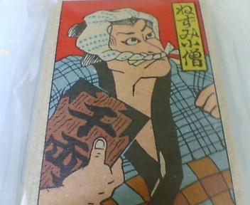 みんなお元気?お久しぶりね♪サンマリエよお盆休みなんてなくてさ、平常どおりの営業でさやんなってくるわよみんな山や海にいったんかしら?それより面白いものみつけたのよこれなんだか?知ってる?アタシの子供時代、流行ったものなんだけどサ鼠小僧のめんこなんだわよ♪最近こういうので遊んでるガキはいないじゃない!!!もしいたら、呼び止められるわよねゲームなんかより健全でいいのにさこのめんこね、荒木又衛門とか柳生石舟とか、吉岡清十郎とかのめんこなんだわよみんな知らないでしょう?アタシなんかの憧れのチャンバラの世界なんだけどこういうのをみつけて思わず買っちゃったのよこの鼠小僧だってさ、どろぼーだったけどさ、アンタ、このおやじはサ貧しい人の家にお金を落としていって、悪いやつらからかすめとってたんだけどアタシの子供時代、よくこの話きいたのよ一枚一枚ひろげてサ、懐かしんで一杯やってたってわけミニーにこれわかる?ってアタシ聞いたら・・・・・鼠先輩?っていったわよ(爆)なによそれ?鼠先輩って!!!!!!!!アタシが聞いたらさ、なんか演歌の歌手みたいよね聞いてみるかな?それもそうだけどサ、めんこの相手やるひといない??やりたいのよ、アタシ・・・アタシが必ず、勝つにきまってるから(ふん)いたら連絡ちょうだい!!!じゃあね♪