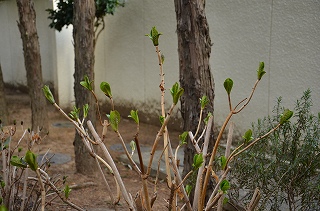 今朝も冷えて霜注意報が出ていましたそれでも「アジサイ」の芽が春よ来いとばかりに出てきています