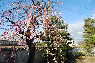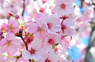 いつも一足早く咲く紅色した桜が見ごろとなっています今日はグループとのお花見こちらは「ソメイヨシノ」桜天気はお蔭でばっちり寒さは少し気になる