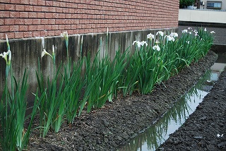昨年移植したショウブの花今年は今一つ咲き誇りになりませんでしたしかも白が多く花色面で不満でしたそこで移植前の残りのショウブで花色を記憶していて今朝移植をしました来年が楽しみです