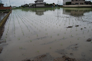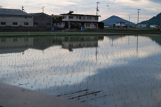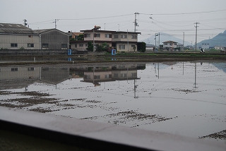 連日の雨で水田に水が溜り田植えの準備が出来た状態です田植えは20日頃の予定ですから少し早いのでもう少し後で雨が降って欲しいです