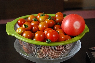 雨も上がり野菜の収穫が大変です昨日は野菜セットを5軒持参しました準備が大変(スイカ・トマト・ナス・キュウリ・カボチャ・インゲン・ピーマン・オクラ)早速今朝メールで美味しかったのお礼報告があり何やら嬉し恥ずかし今朝のトマトが写真の状況です