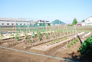 先日より畑の苗の支柱作りが進みずいぶんと賑やかになった販売している支柱は本数が沢山いるので一部竹で補いました